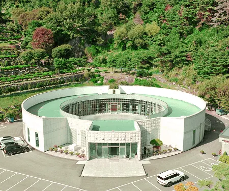 만어산 정상부의 가장 높은 곳에 자리한 원형 건축물. 사계절 변화를 온전히 느낄 수 있는 특별한 입지에서,365일 자연과 함께 숨 쉬는 최적의 추모 환경을 제공합니다.